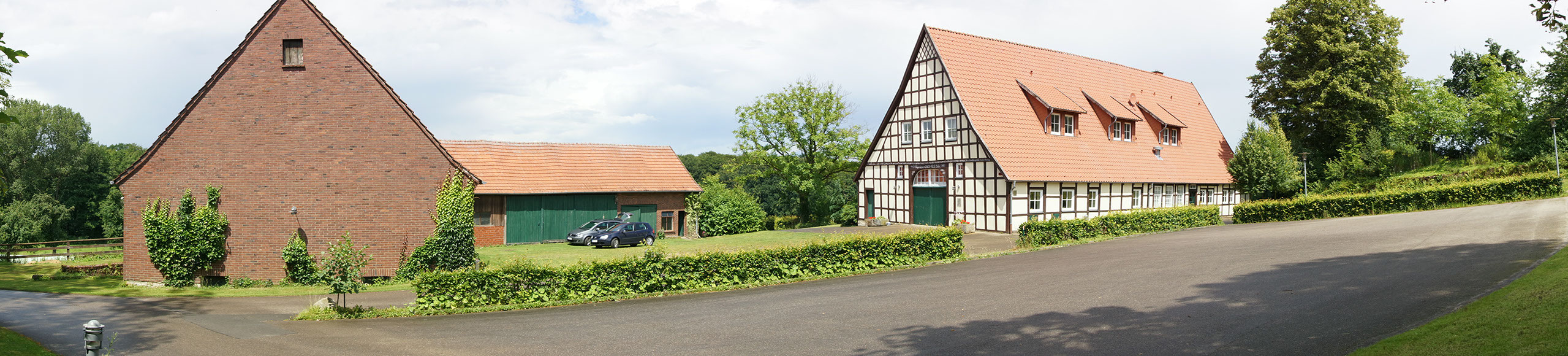 De kern van de huidige boerderij is meer dan 350 jaren oud en na de Boerenbevrijding, als ook na de invoering van de kunstmest, vaak uitgebreid. Het gebouw heeft echter de langgerekte vorm van een typisch Niedersachsenhauses tot op de dag van vandaag behouden. De laatste uitbreiding van het huis vond plaats in 1834. Sindsdien siert een „spreukbalk“ het huis met de volgende inscriptie: